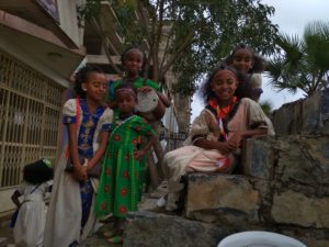 Ninas vestidas de traje tradicional de Ashenda-festividad religiosa